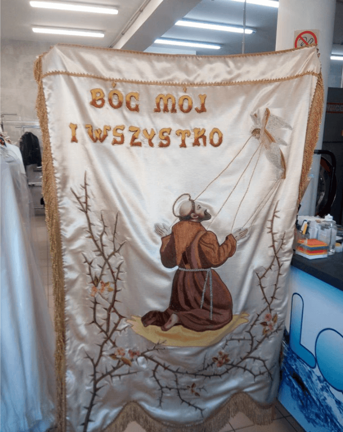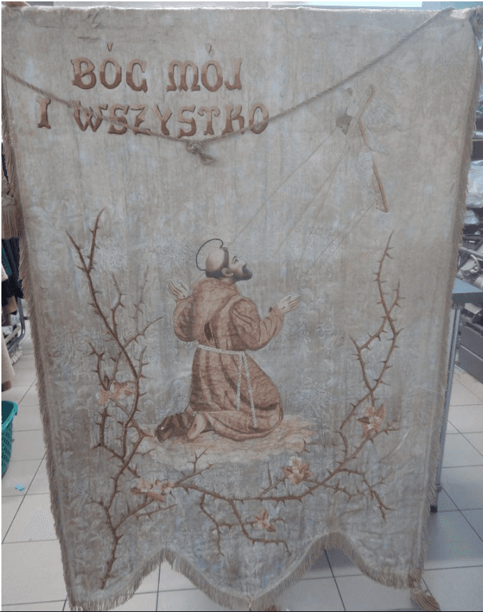 się czyszczeniem i renowacją sztandarów, chorągwi i szat liturgicznych.